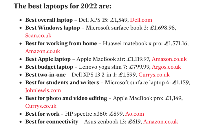 Hogarty, S. (2022) ‘Best laptops 2022: High-performance devices for working from home or gaming on the go’. Available at: https://www.independent.co.uk/extras/indybest/gadgets-tech/laptops-tablets/best-laptop-uk-laptops-b1883320.html. (Accessed: 2nd June 2022)